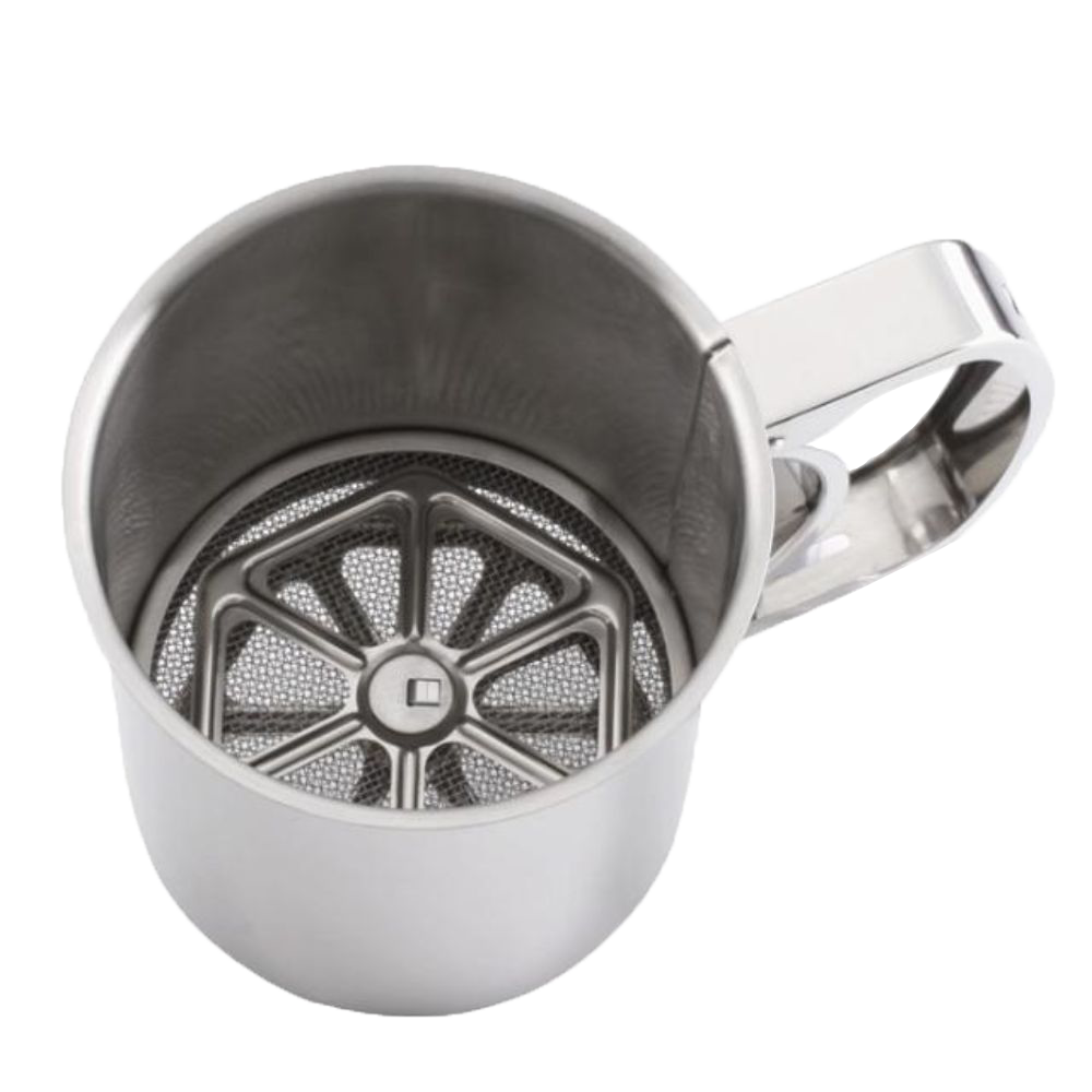 One handle flour & icing sugar sifter with pouring rim & cover