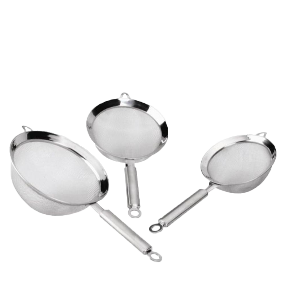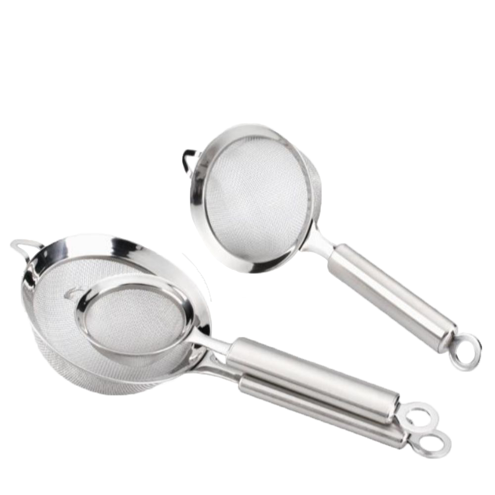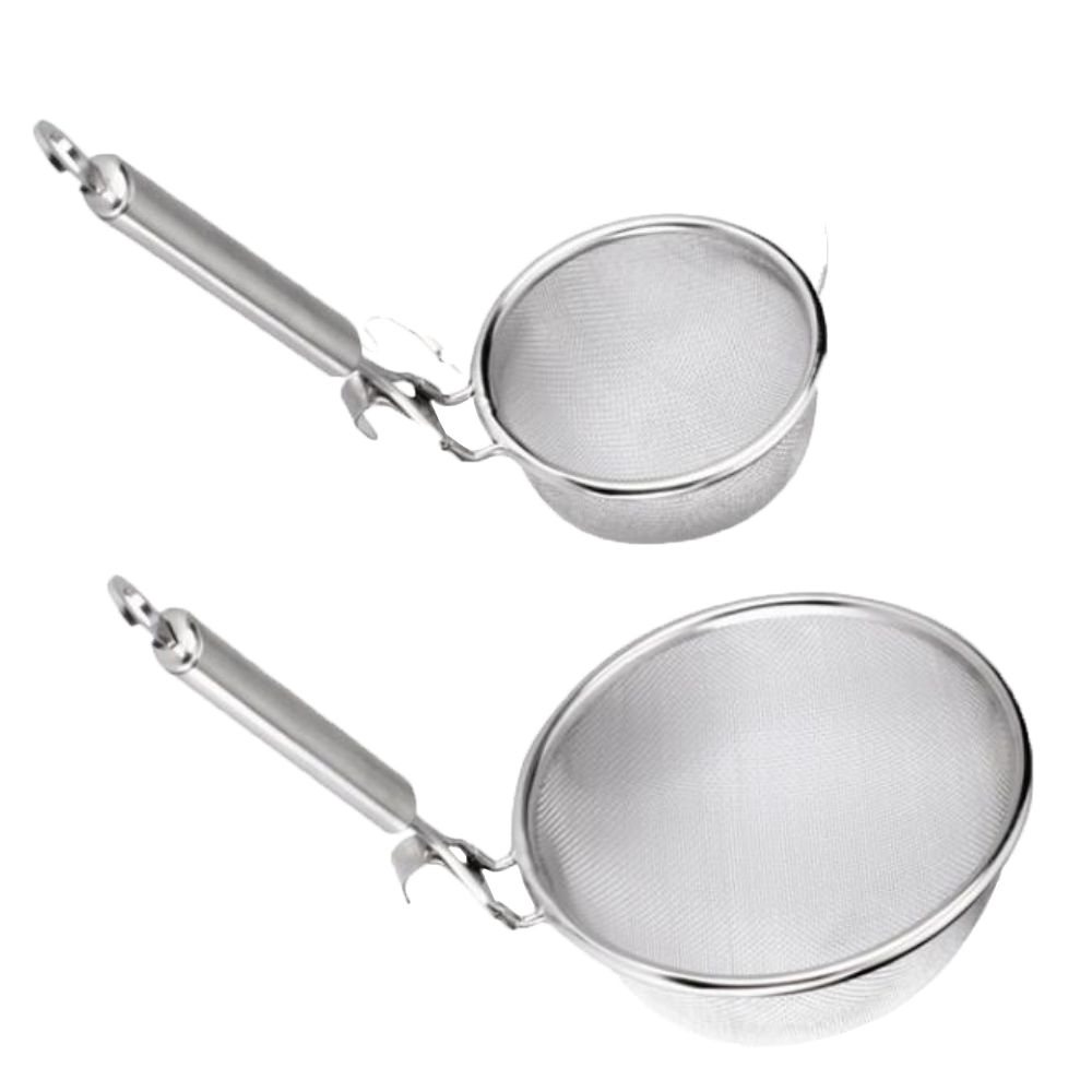 Stainless steel mesh strainer with oval tube handle with flat hook & stainless steel cover