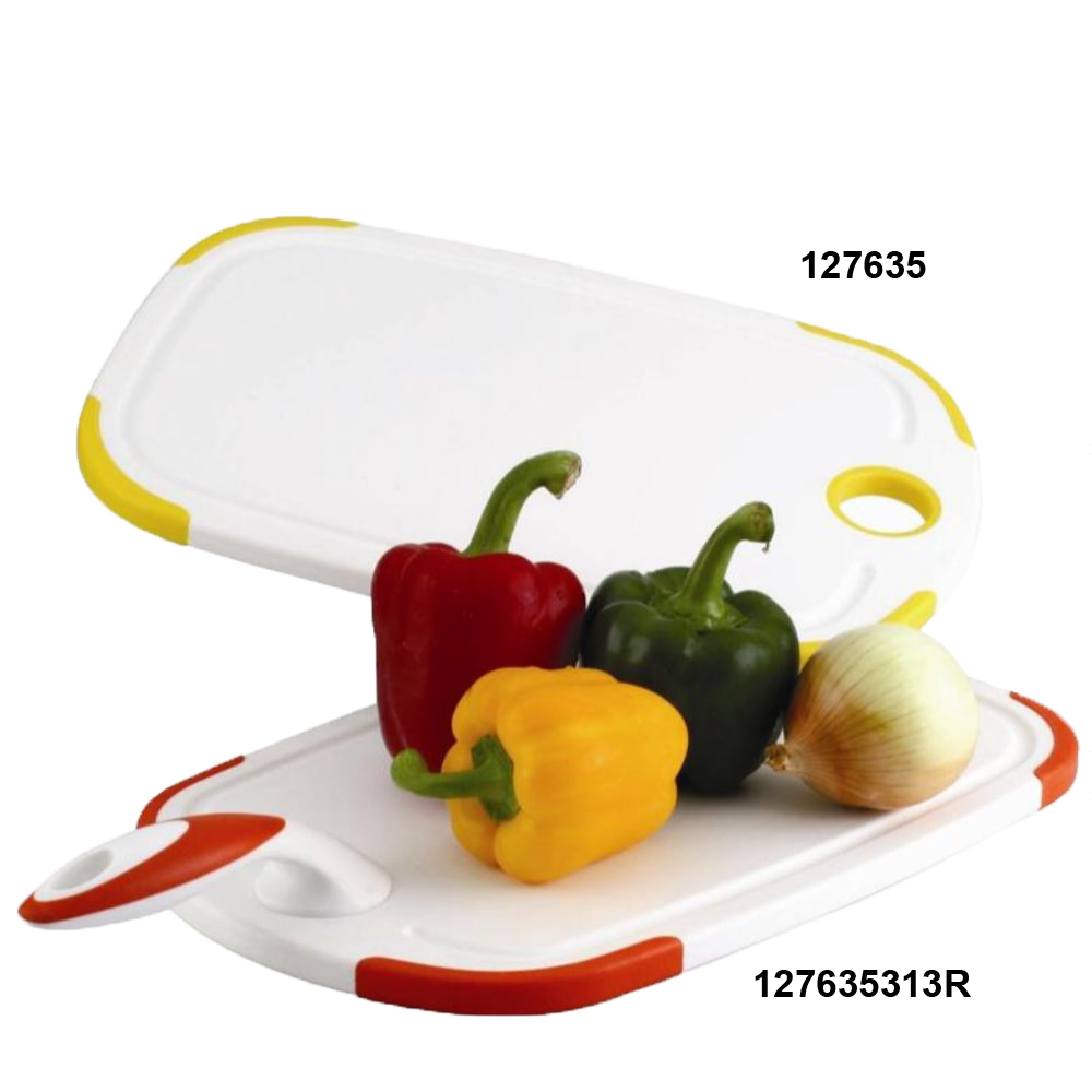 PP solid color reversible cutting board with rubber soft grip handle