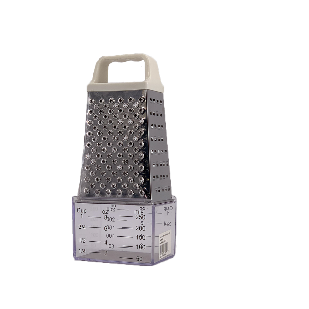 Tower shape 18/0 stainless steel 4 way grater with PP knob & rubber feet frame