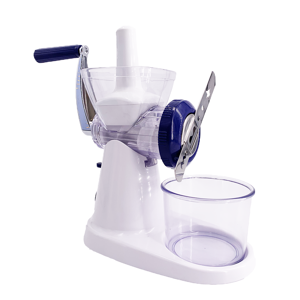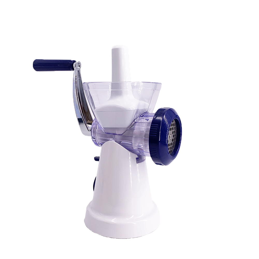 ABS mincer with stainless steel mincing plate & blade with zinc alloy crank handle with translucent container
