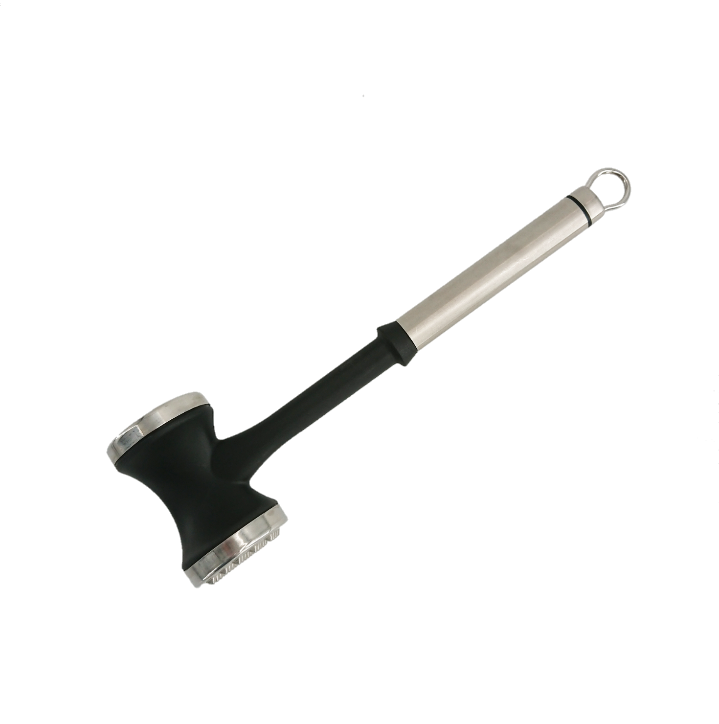 Meat hammer with smooth & burled functional surface with oval tube handle