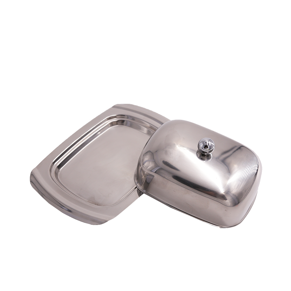 Butter dish with lid and chrome plated knob