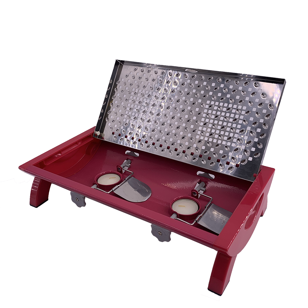 Iron food warmer for 2 persons with colour spray on body with cover plate & 2 pieces of candles