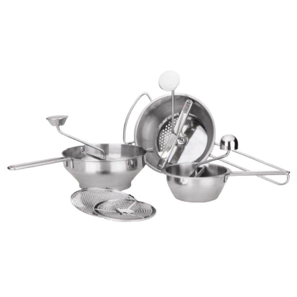 190mm (dia) vegetable sieve / food mill with long wire handle & support handle with 2 grater plates #3334190 -1