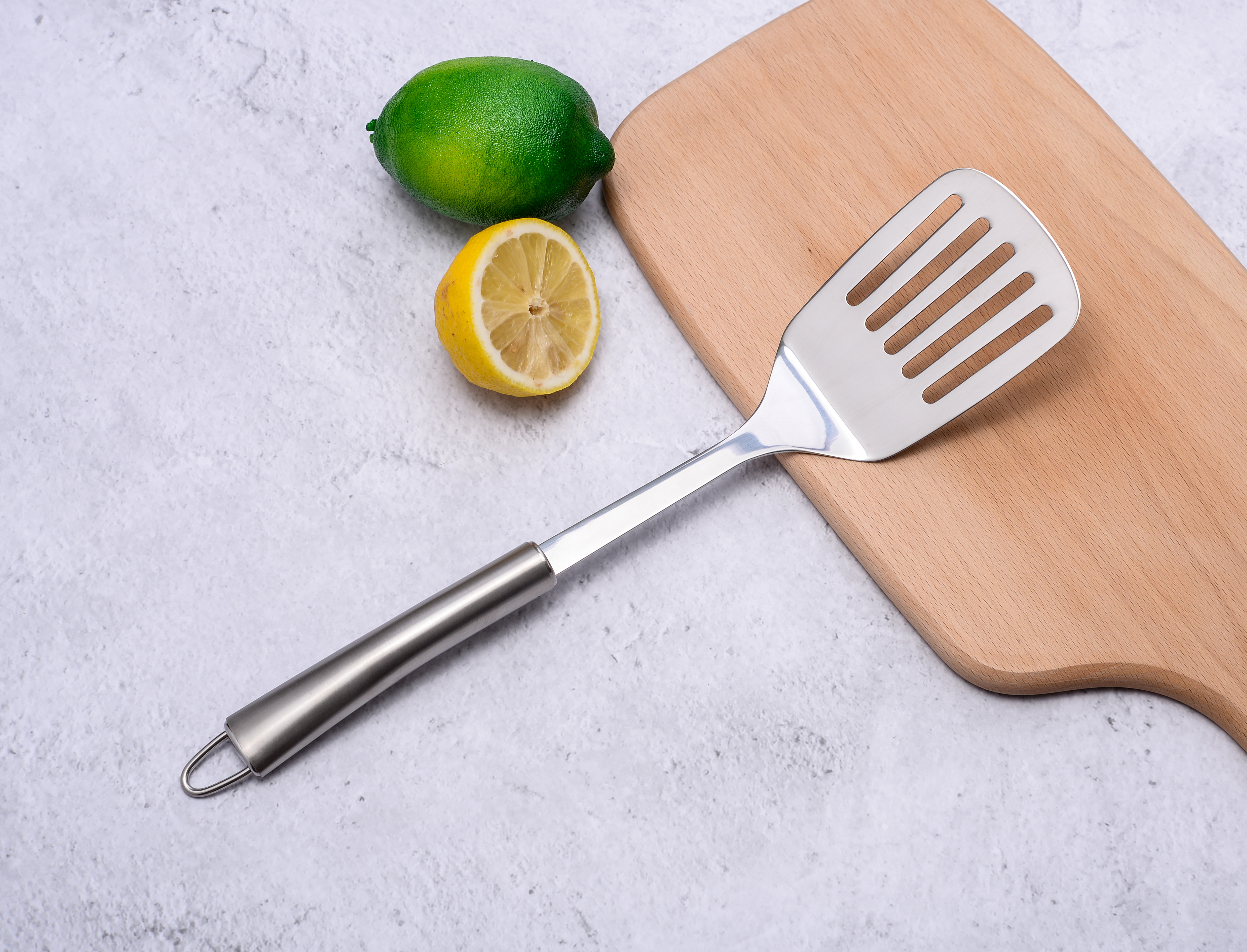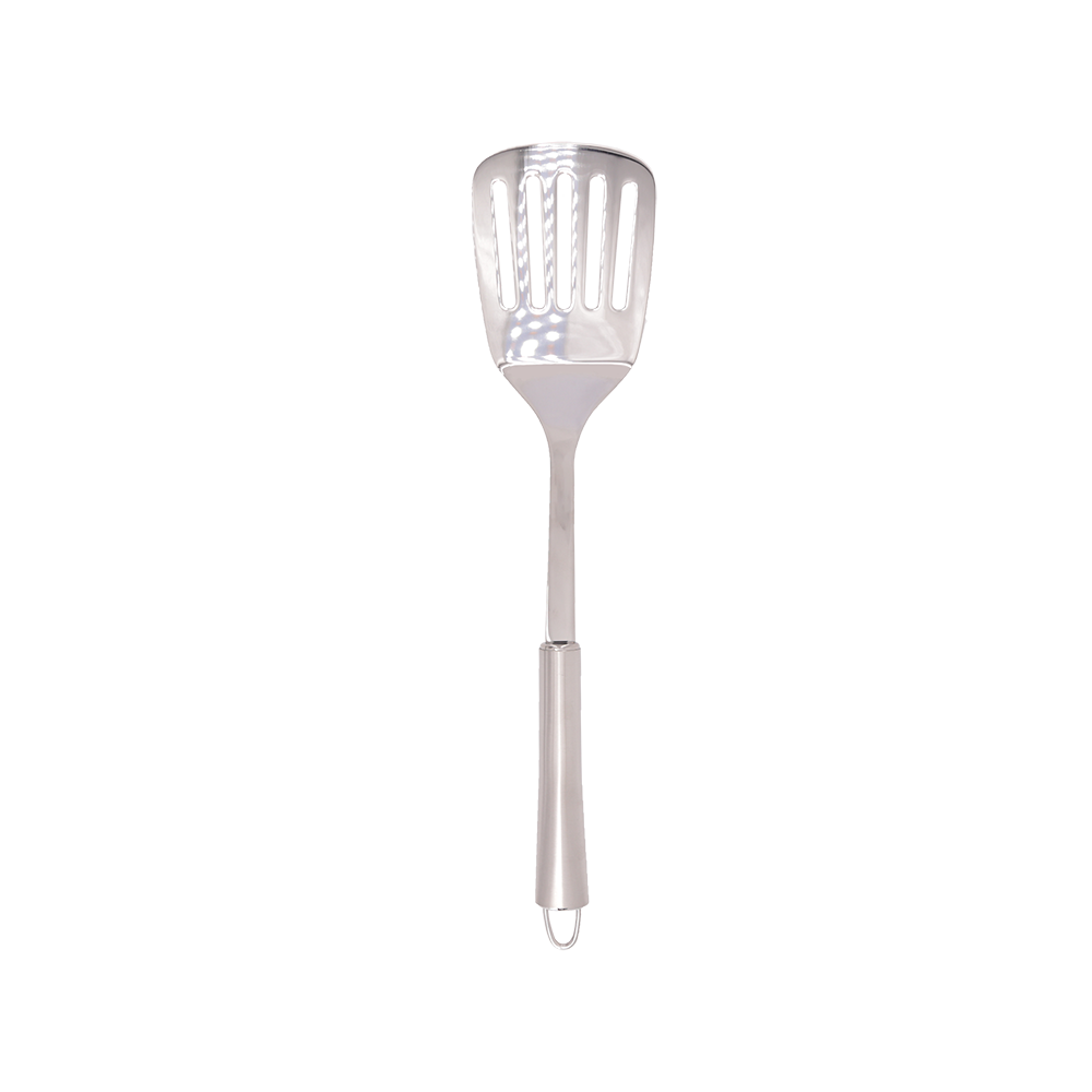 Slotted turner with curved handle