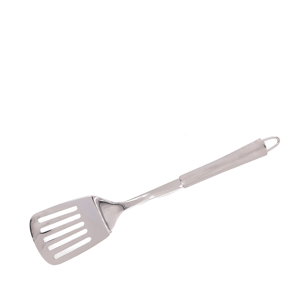 Slotted turner with curved handle