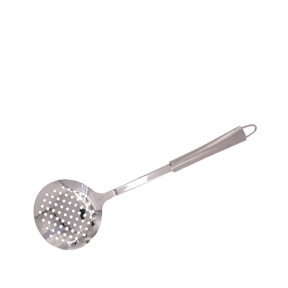 Rice skimmer with curved handle