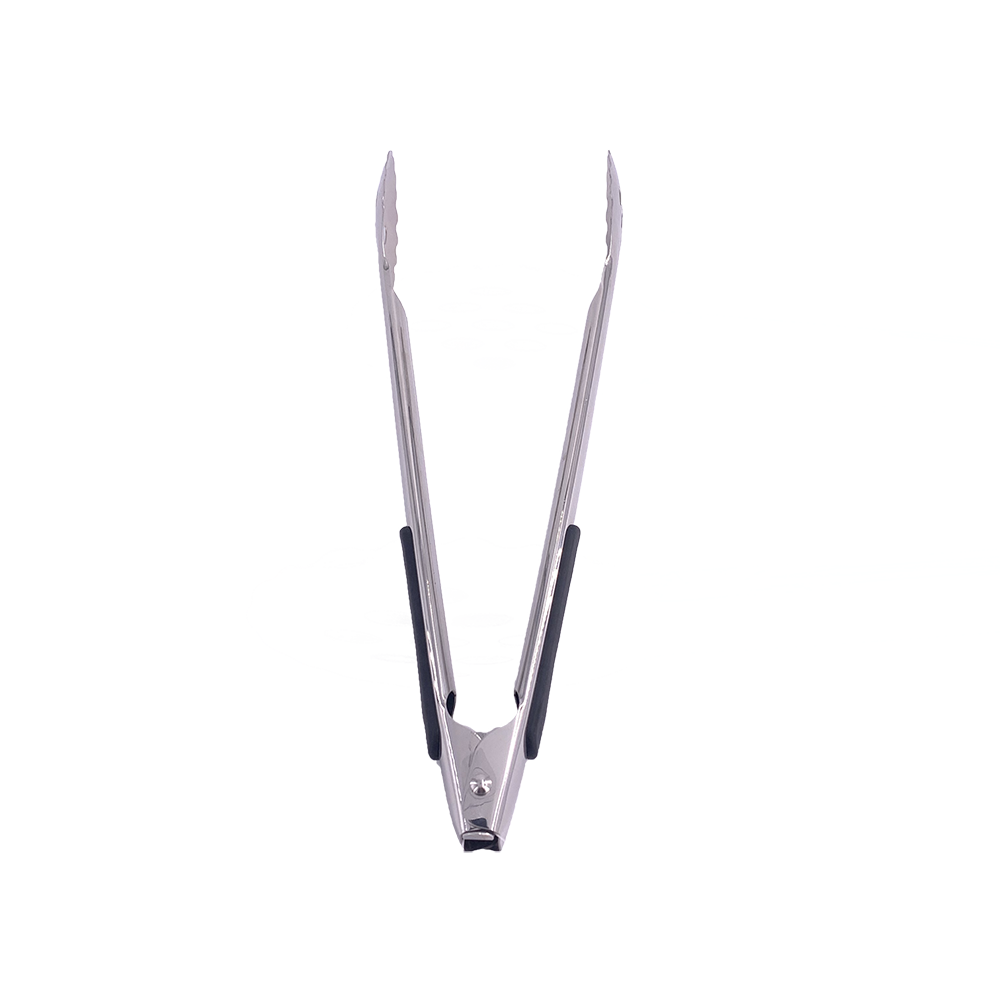 Serving tongs with locker and rubber hand grip