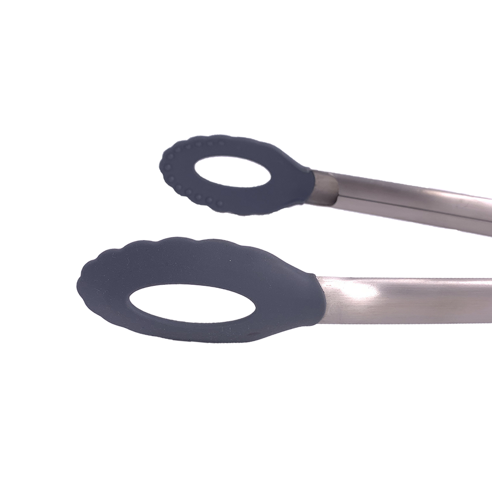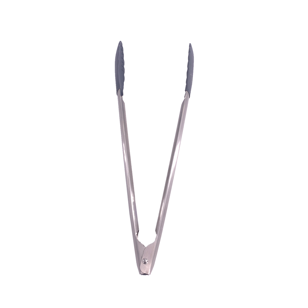 Satin finished serving tongs with locker, silicon head and TPE grip